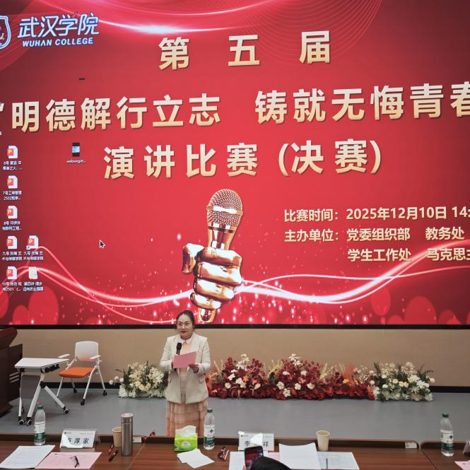 为引导青年学子传承中华传统美德、树立法治信仰,将思政教育与实践育人深度融合,2025年12月10日下午,武汉学院第五届 “明德解行立志,铸就无悔青春” 演讲比赛决赛在“大思政课”实践教学育人基地隆重举行。